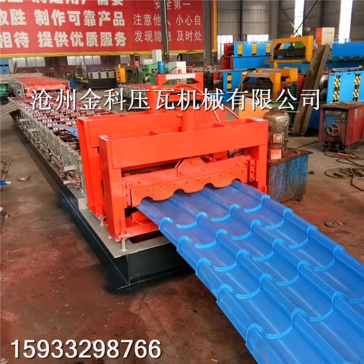 765琉璃瓦设备765型琉璃瓦压瓦机产品概述: 经该765型 琉璃瓦压瓦机 辊轧冲模成型的仿古琉璃瓦是我公司新 的一种具有外形美观、古朴典雅、造型考究别致、品位等特点,可广泛用于别墅、